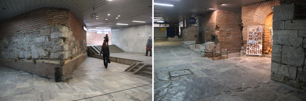 Az elnöki palota környékén lementem az aluljáróba, amely ma már egész rendszert alkot. Első részét 1968-ban kezdték építeni, s akkor bukkantak a réges-régi Serdica (Szerdika) romjaira: ezt a várost a trákok alapították 3000 évvel ezelőtt. Tök érdekes volt ősi trák kövek között metró-aluljáróban sétálni.