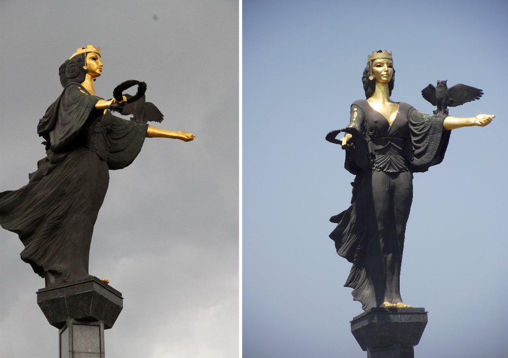 Innen továbbsétálva lefotóztam a 2002-ben idehelyezett Szent Szófia-szobrát (állítólag Lenin szobrának helyén áll).