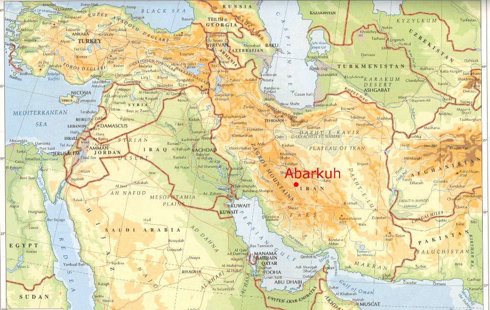 Abarkuh elhelyezkedése a Közel-Kelet térképén