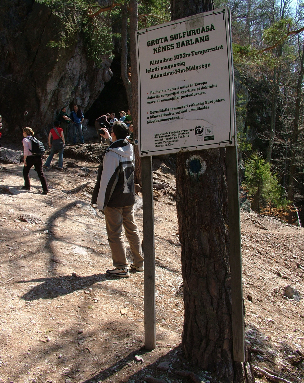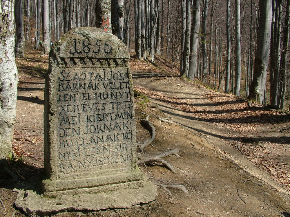 E kőzeteken túrázva, a kényelmesen emelkedő bükkösben vezető útvonal mellett később elhagyunk egy 1856-ban állított sírkövet, mely elképzelhető, hogy a barlang egykori áldozatáé (Sz. Ajtai Jósa Izsáké) lehet. A kapaszkodót bő 20 perc alatt leküzdve hamarosan megérkezünk a Jókai által pokol tornácának nevezett helyre, a Büdös-barlang elé, mely tulajdonképpen egy mofetta, sőt, Európa legnagyobb természetes mofettája.