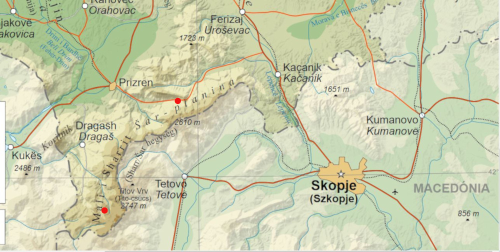 A Balkán közepén, Koszovó és Makedónia határán emelkedik egy magashegység. A jugoszláv időkből főleg a makedón és szerb neve ismert inkább: ez a Šar Planina (Шар Планина). Mivel azonban most a hegység északi, koszovói oldalát mutatom be, az albán nevét is ugyanolyan fontos megemlíteni: Malet e Sharrit. A hegységbe tett túrához az albán-makedón-koszovói hármashatár közelében fekvő gyönyörűséges kisvárost, Prizrent válasszuk kiindulási pontul. Prizrenből kiindulva két nagyobb túrát tudunk tenni. Az egyik túrát keletre, a Prevalac hágó felé tehetjük (lásd ide kattintva), a másikat pedig dél felé, Brod irányába.