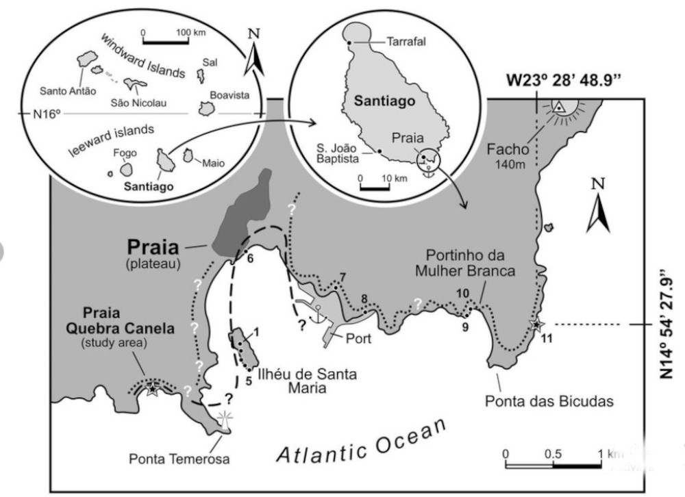 A mindössze 1,6 kilométer kerületű Ilhéu de Santa Maria elég kicsi volt ahhoz, hogy Darwin részletesen tanulmányozhassa. Feltérképezte a kőzetrétegeket, és mintákat gyűjtött mindegyikből, felhasználva a szigetet a sokkal nagyobb Santiago megértésének kulcsaiként, amely magával ragadó geológiai nyomokat tartott. A Porto Praia melletti sziklafalon Darwin észrevett egy tengeri kagylóágyat, amely nagyjából 14 méterrel a tengerszint felett pihent.