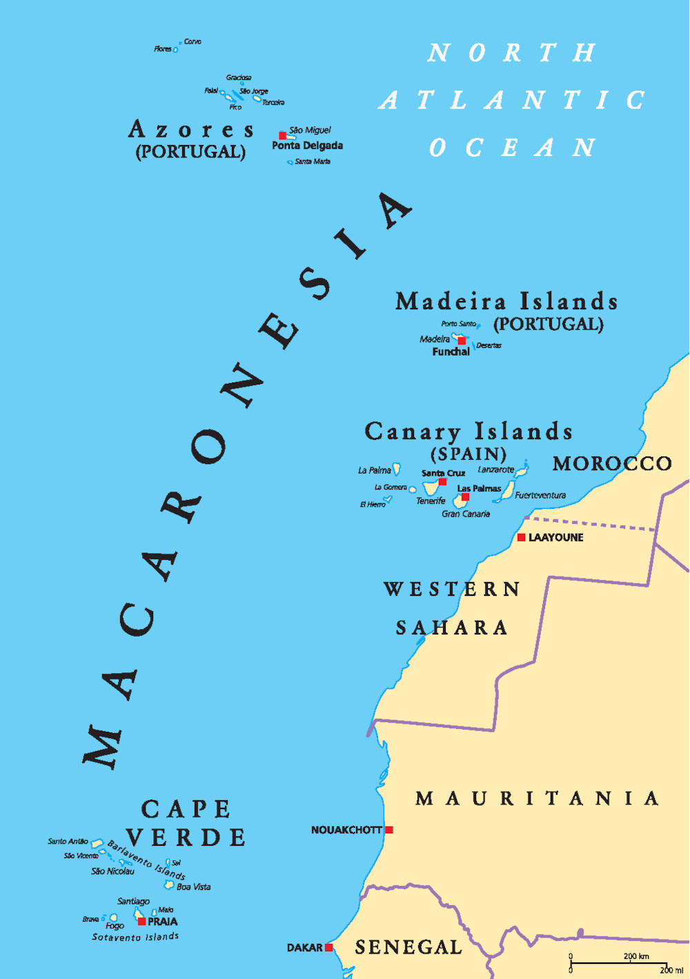 Makaronézia (Macaronesia) politikai térképe – Ábra: shutterstock
