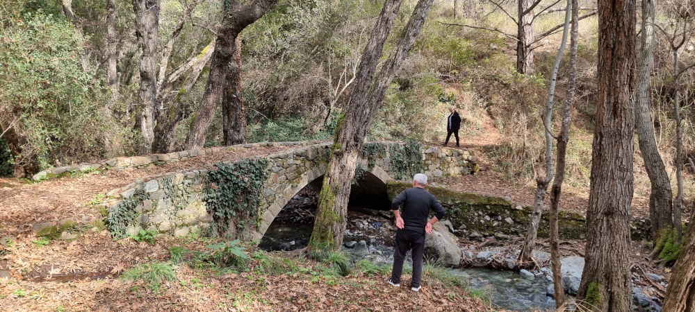 A Kryo Nero patak folyását követve dél felé egy kilométerrel lejjebb van még egy kis látnivaló, tényleg nem nagy, de egy nagyon hangulatos középkori kőhíd, Milia hídja. Az egyíves kőhíd is szép, de igazából az erdei környezet teszi még hangulatosabbá. A híd azért készült anno, mert itt vezetett anno a régi út Pera Pedi és Platres falvak között.
