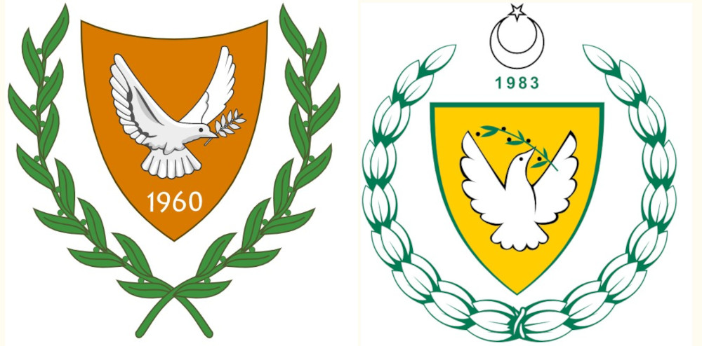 Balra Ciprus, jobbra Észak-Ciprus címere