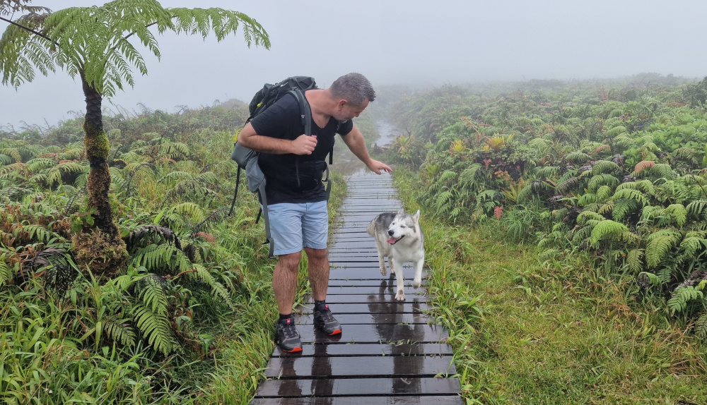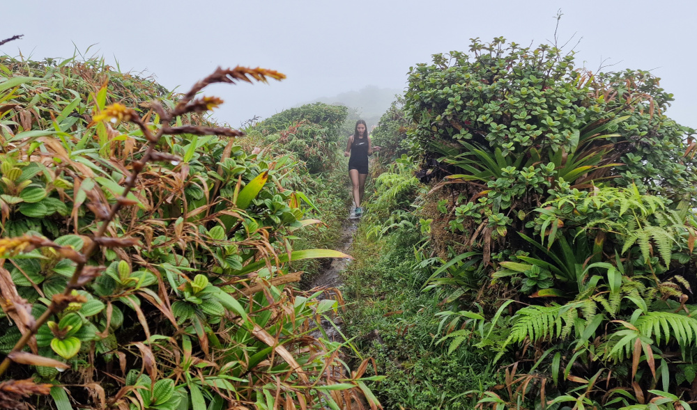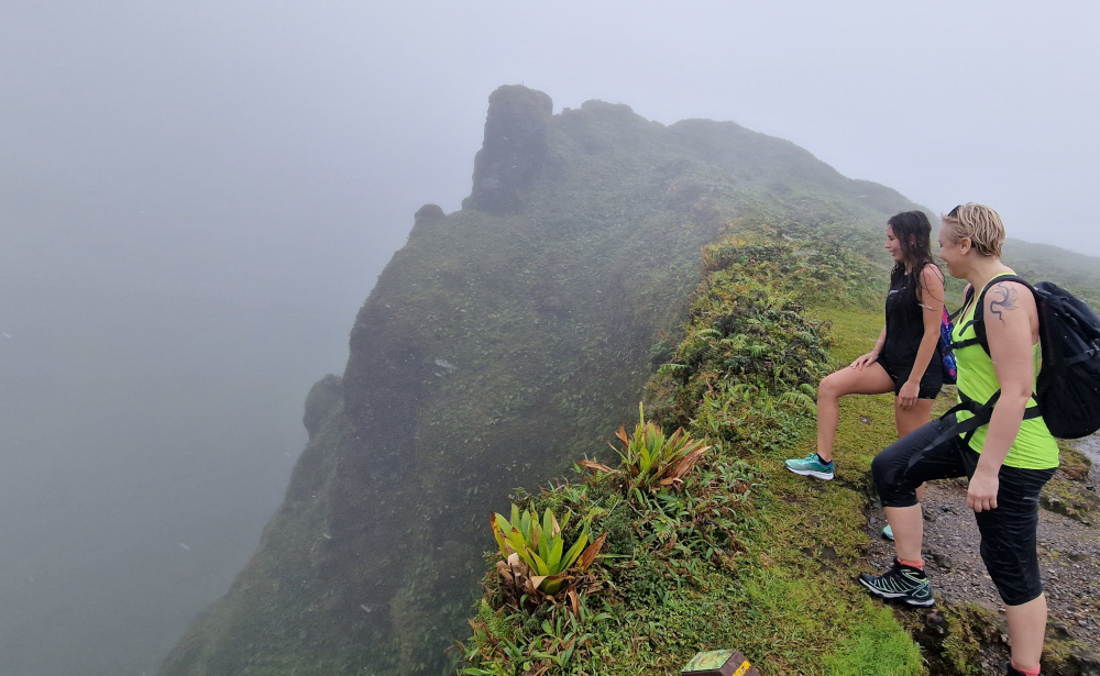 Nézzük először a túrát: ha a hegyre akarunk menni, érdemes kocsival műúton Le Morne-Rouge-on át egy 820 méter magasan lévő parkolóig menni és onnan gyalogoljunk fel egy ösvényen a hegyre. Itt csaknem állandóan szitál az eső, hatalmas mohapárnák és cserjebozót borítja a hegyet, mely egyébként védett terület: Réserve biologique intégrale de la Montagne Pelée.