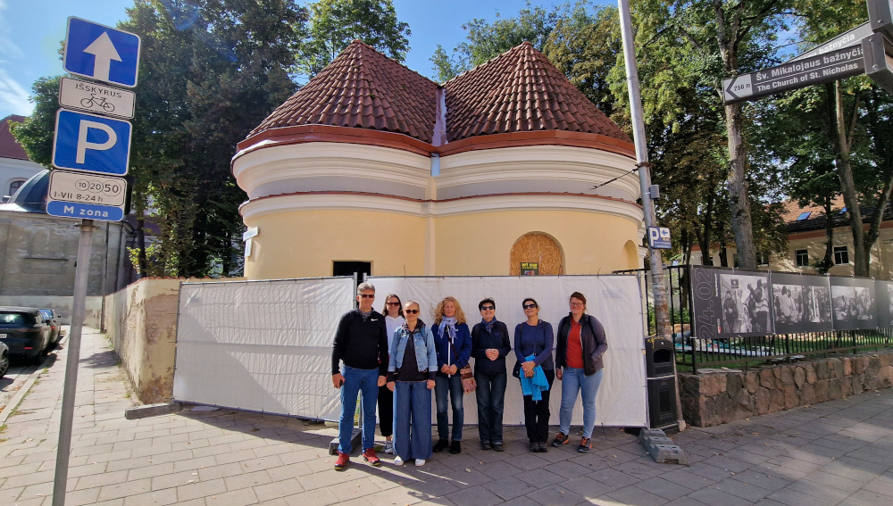 Magyar csoporttal Hedvig nyomában Vilniusban, Traku g. 9. – Fotó: Barna Béla