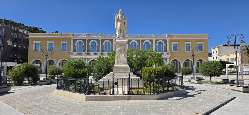 Zakinthosz főterén szobra áll, róla nevezték el a sziget repülőterét: Dionisziosz Szolomosz. De vajon tudjuk e netes segítség nélkül, hogy ki volt ő? Ha nem, a következő bejegyzésben elmesélem, hogy ő volt Hellász nemzeti költője, Himnusz a szabadsághoz című művének két versszaka pedig Görögország nemzeti himnusza.