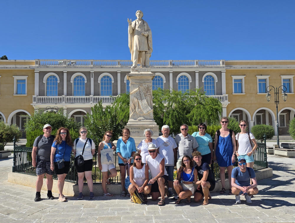 Csoporttal Szolomosz szobránál – Fotó: Barna Béla (2025. szeptember 21.)
