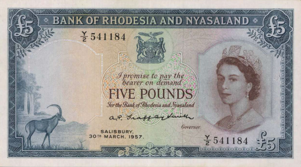 Rhodesia és Nyasaland 5 fontos bankjegye, 1957