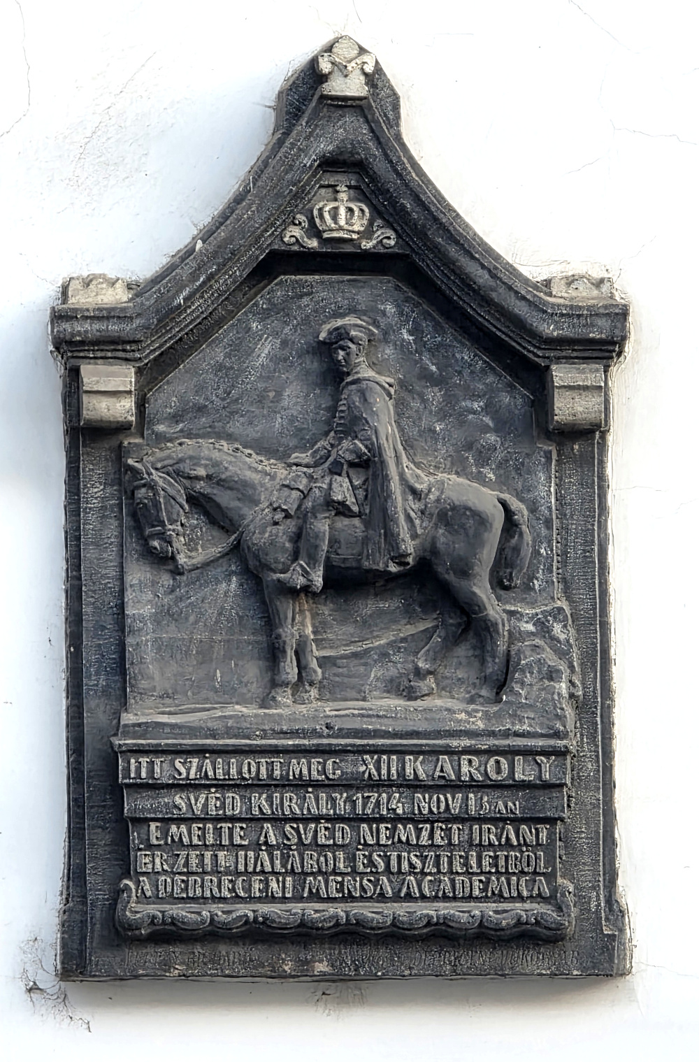 XII. Károly svéd király emléktáblája Debrecenben – Fotó: Barna Béla
