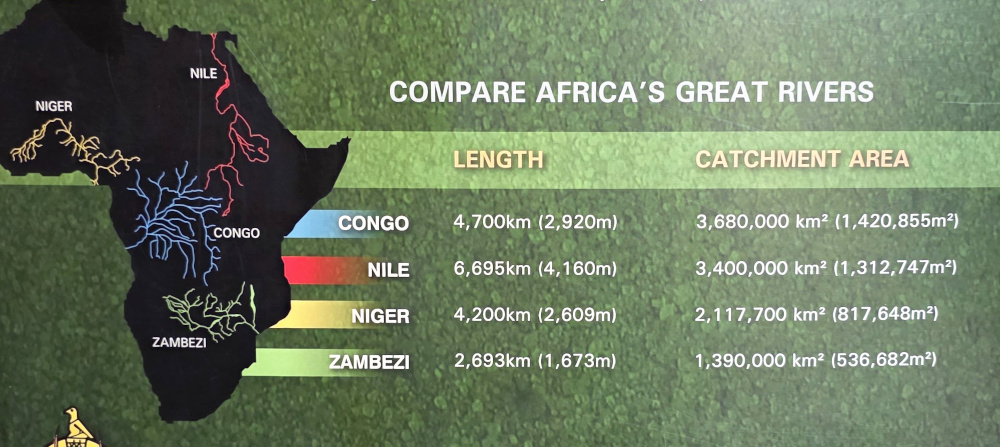 Apropó Zambézi: ez Afrika negyedik leghosszabb folyója (a Nílus, a Kongó és a Niger után), 2574, más adatok szerint 2736 km hosszúságú. A forrása Zambiában van, majd átfolyik Angolán és Zimbabwén, végül Mozambikban ömlik az óceánba. Vízgyűjtő területe 1,33 millió négyzetkilométer.