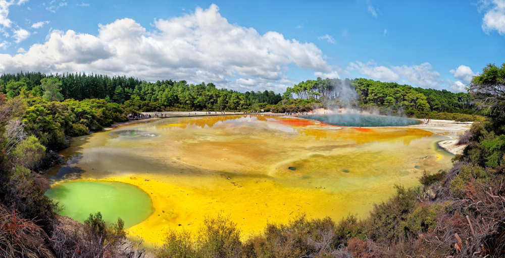 Az egyik leglátványosabb és színpompás geotermikus területe Új-Zéland északi szigetének a Rotoruától 29 kilométerre, a Waimangu-völgytől pedig 10 kilométerre délre fekvő Wai-O-Tapu (Waiotapu). A helynek a Waiotapu-patak adta a nevét, mely maori nyelven annyit tesz: „szent vizek”.