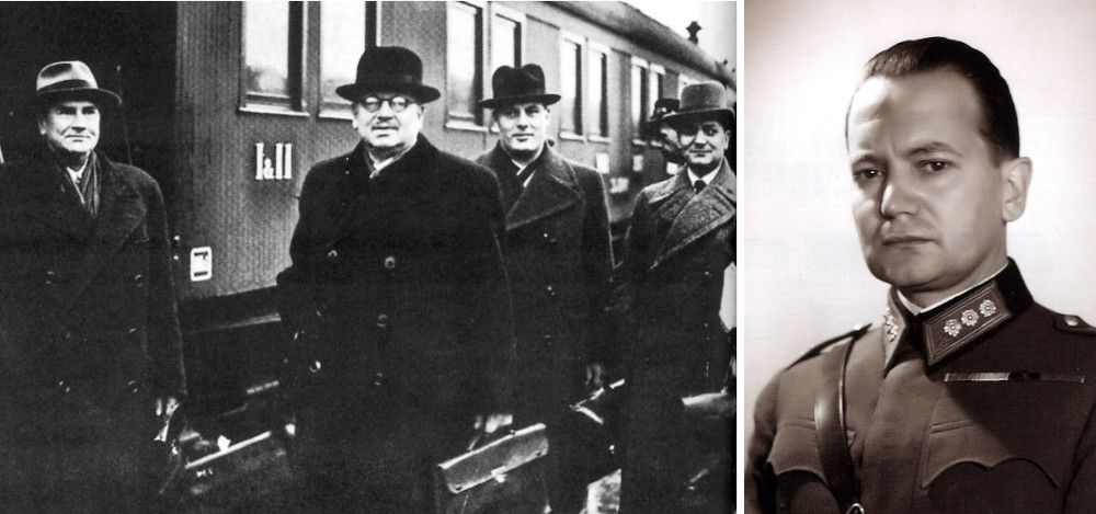 Aladár Paasonen egy delegáció tagjaként (jobb szélen) és portréja
