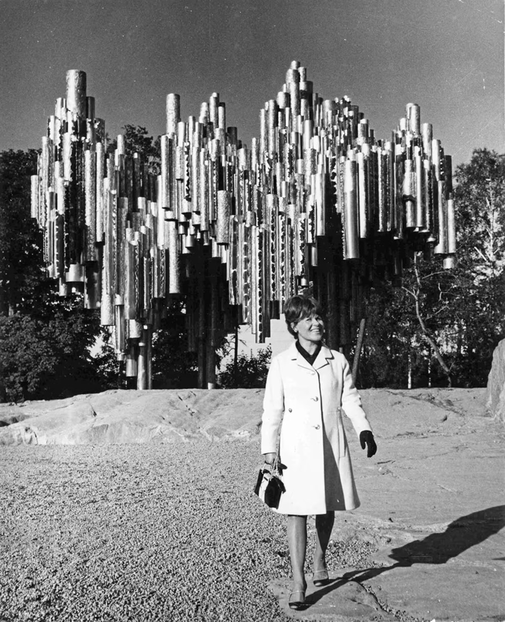 Eila Hiltunen a Sibelius-emlékmű leleplezése után, 1967. szeptember 8-án. Fotó: Otso Pietinen – Forrás: yle