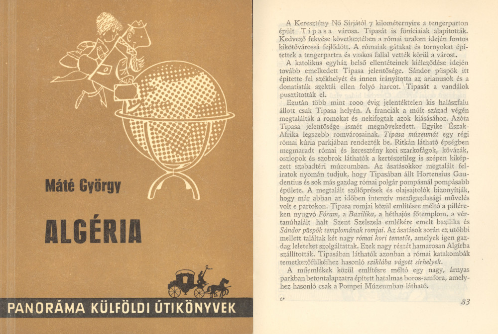 Tipasa egyébként benne van a Panoráma Külföldi Útikönyvek sorozatában 1971-ben megjelent, Máté György által írt Algéria kötetében is. Az 1971-es könyvben azt írja a szerző, hogy ez „Egyike Észak-Afrika legszebb romvárosainak. Tipasa múzeumát egy régi római kúria parkjában rendezték be. Ritkán látható épségben megmaradt római és keresztény kori szarkofágok, kővázák, oszlopok és szobrok láthatók a kertészetileg is szépen kiképzett szabadtéri múzeumban. Az ásatásokkor megtalált feliratok nyomán tudjuk, hogy Tipasában állt Hortensius Gaudentius és sok más gazdag római polgár pompásnál pompásabb épülete. A megtalált szőlőprések és olajsajtolók bizonyítják, hogy már abban az időben intenzív mezőgazdasági művelés volt e partokon. Tipasa romjai közül említésre méltó a pilléreken nyugvó Fórum, a Bazilika, a héthajós főtemplom, a vértanúhalált halt Szent Szelszela emlékére emelt bazilika és Sándor püspök templomának romjai. Az ásatások során ez utóbbi mellett találtak két nagy római kori temetőt, amelyek igen gazdag leleteket szolgáltattak. Ezek nagy részét hamarosan Algírba szállították. Tipasában láthatók azonban a római katakombák temetkezőfülkéihez hasonló sziklába vágott sírhelyek. A műemlékek közül említésre méltó egy nagy, árnyas parkban betontalapzatra épített hatalmas boros-amfora, amelyhez hasonló csak a Pompei Múzeumban látható” (Máté György, Algéria, 1971).