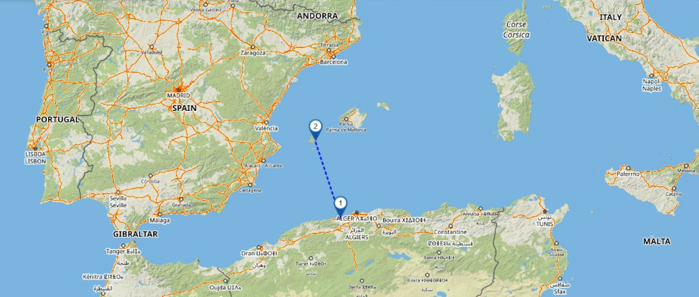 Tipaza és Ibiza távolsága 271 km